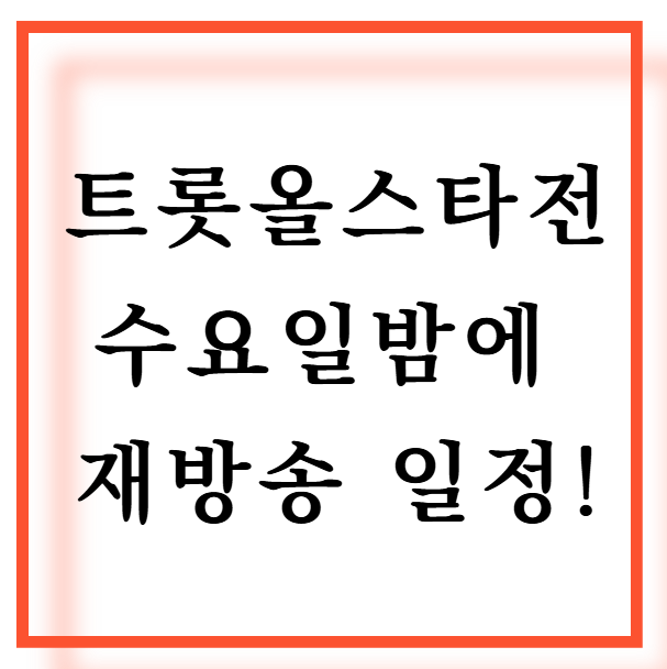 오늘은 화제의 방송 트롯 올스타전 수요일밤에 본방을 놓치신 분들을 위해 재방송 일정을 안내 해 드리려고 하는데요.