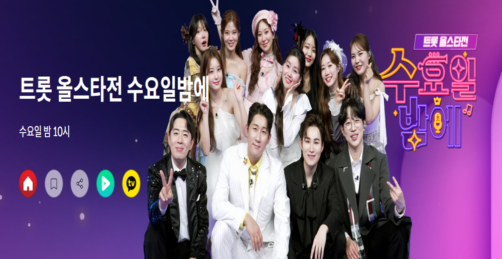 - TV조선의 인기 트롯 가수들이 라이브 밴드와 함께 경쟁하는 음악 예능